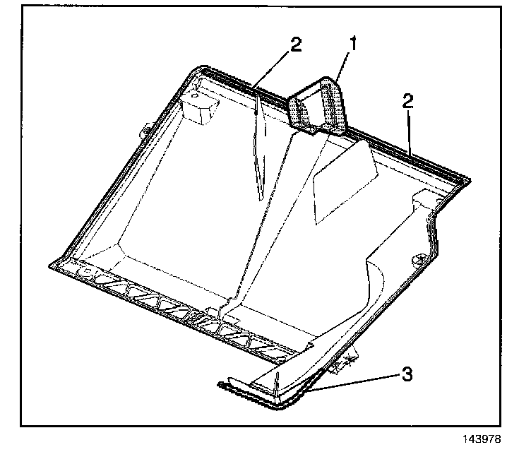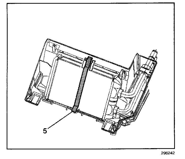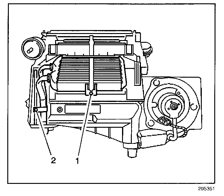 13. Remove and discard the seals (1,2) from the heater core cover.