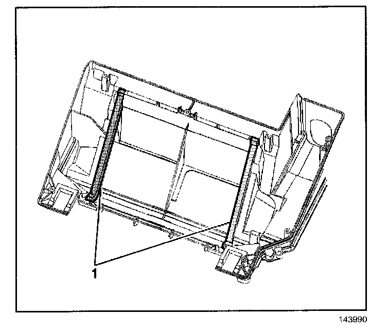 23. Remove and discard the side seals (1) from the HVAC lower case.