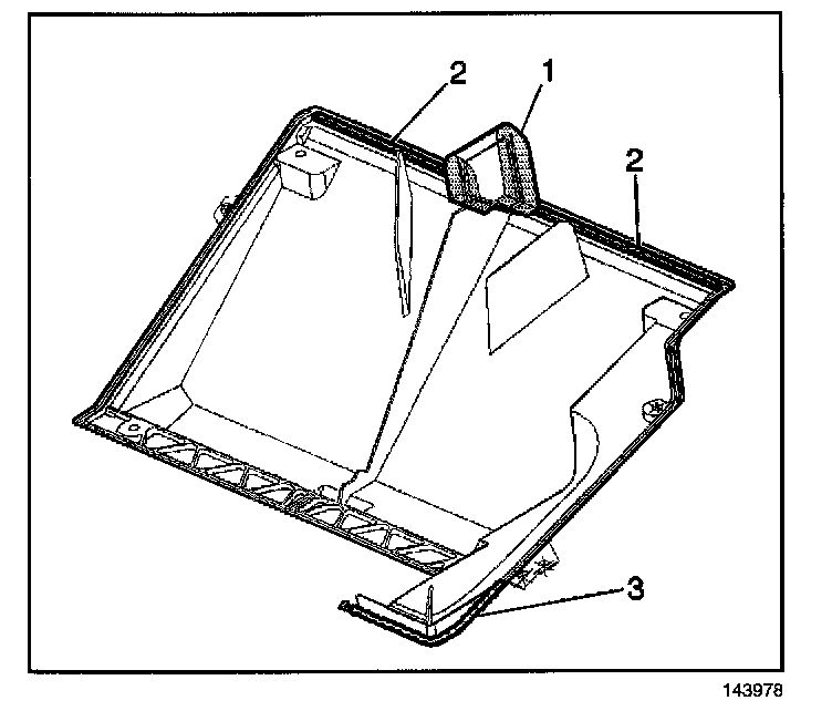 IMPORTANT: Position the heater core outlet cover downward and rearward in order to disconnect the cover from the rear area floor duct assembly.