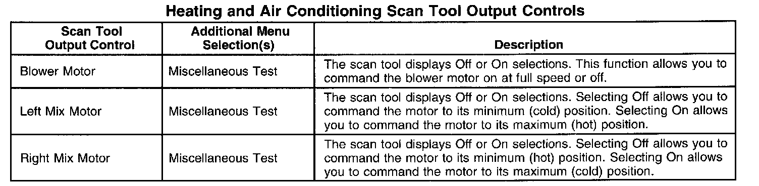 Heating And Air Conditioning Scan Tool Output Controls: