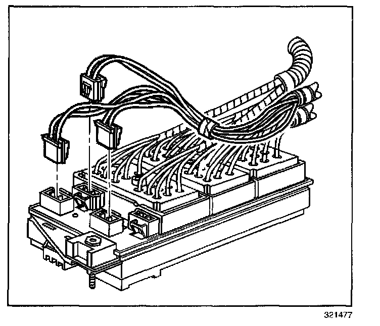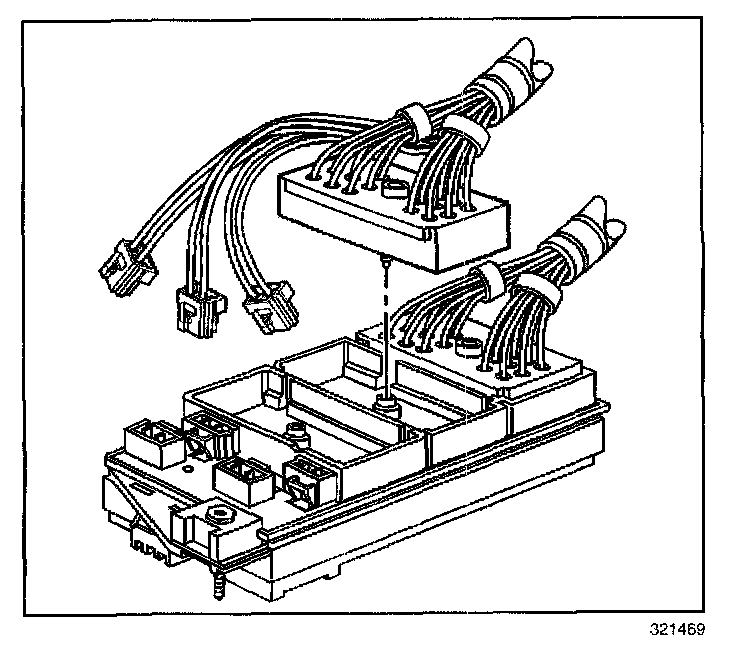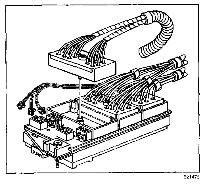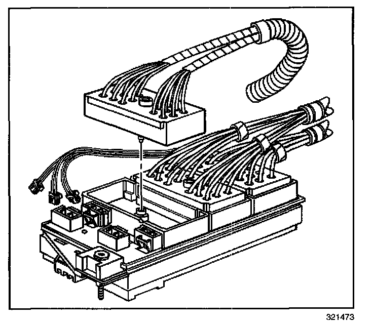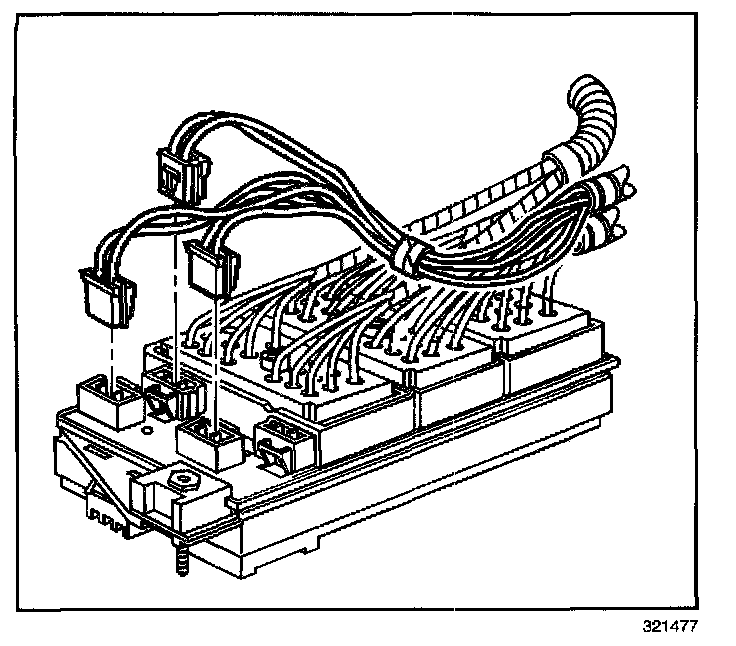 5. Tighten the bolts retaining the engine, IP and forward lamp wiring harness connectors to the junction block.
