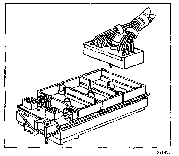 7. Position the wiring harnesses and the accessory wiring junction block to the junction block retainer, align the four retaining tabs and press into place to secure the junction block.