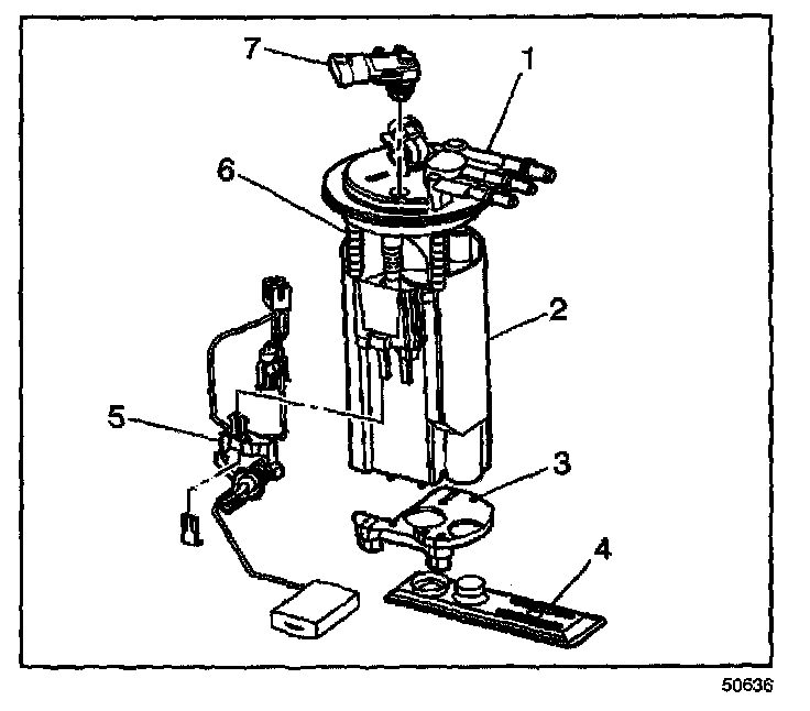 1. Install the fuel level sensor (5) to the fuel sender assembly.