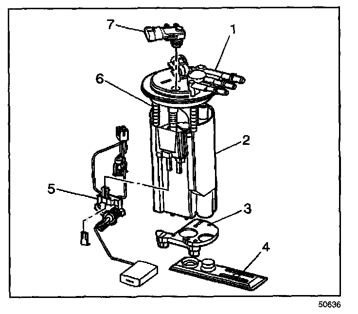 7. Remove the FTP sensor (7) from the fuel sender assembly.