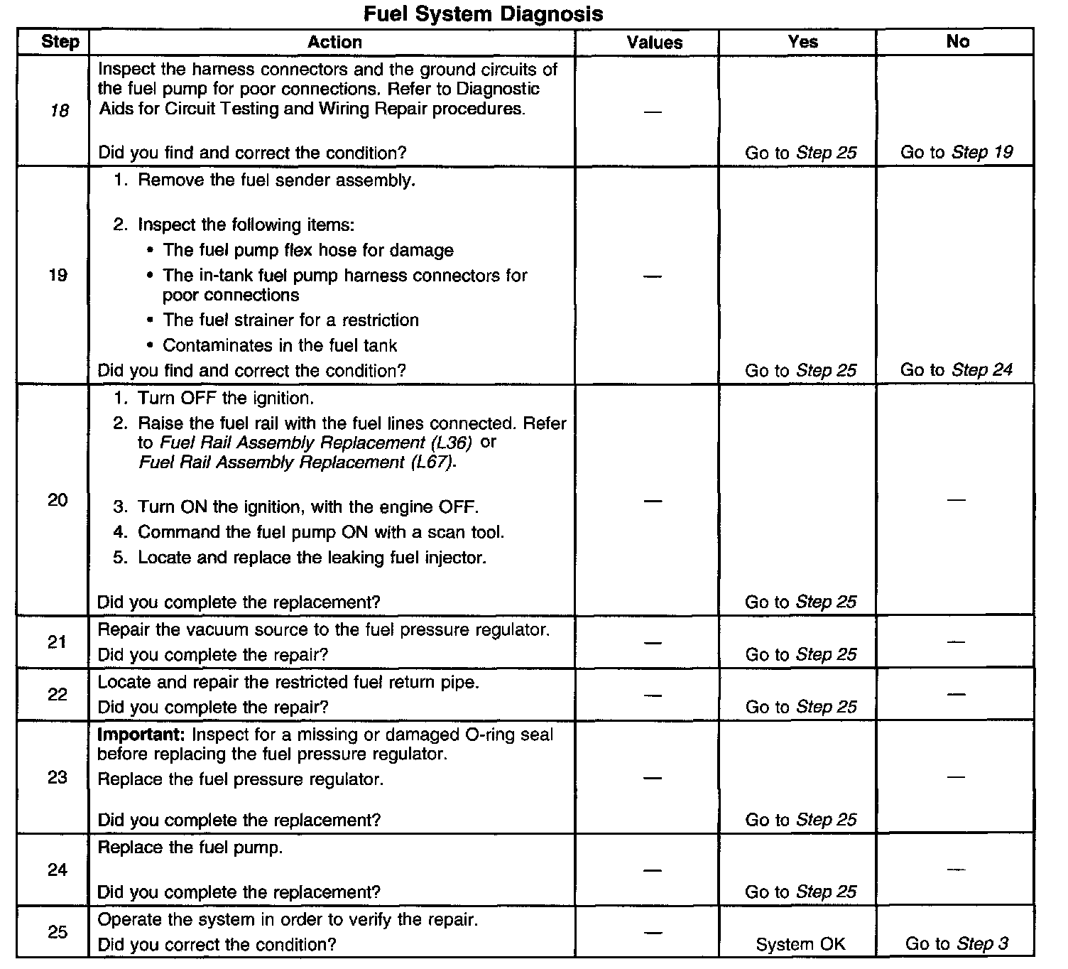 18. This step verifies that a circuit condition is not the cause of a fuel pressure concern. Inspect all fuel pump electrical circuits thoroughly.
