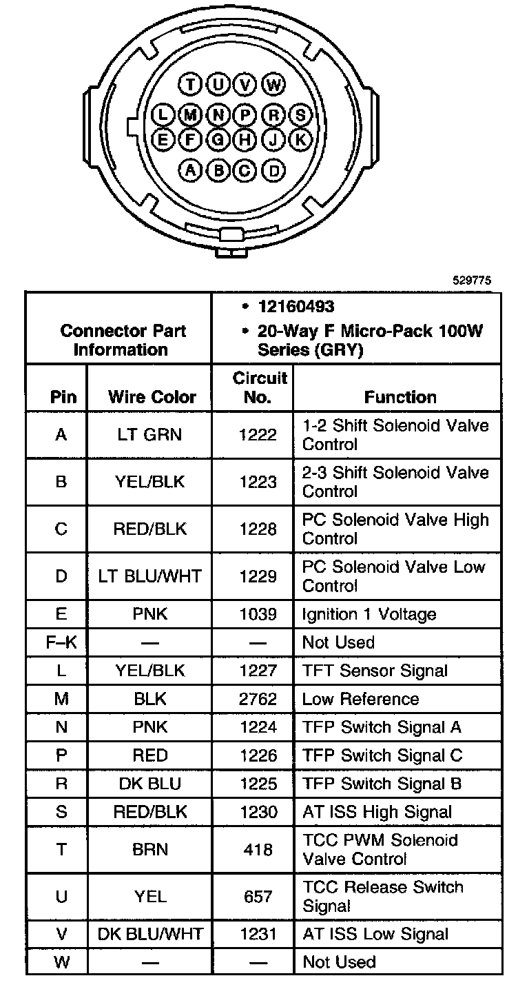 A/T Inline Harness 20-way Connector, Engine Side