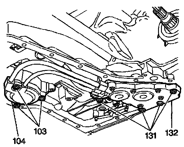 4. Remove the manual 2-1 band servo cover bolts (103).