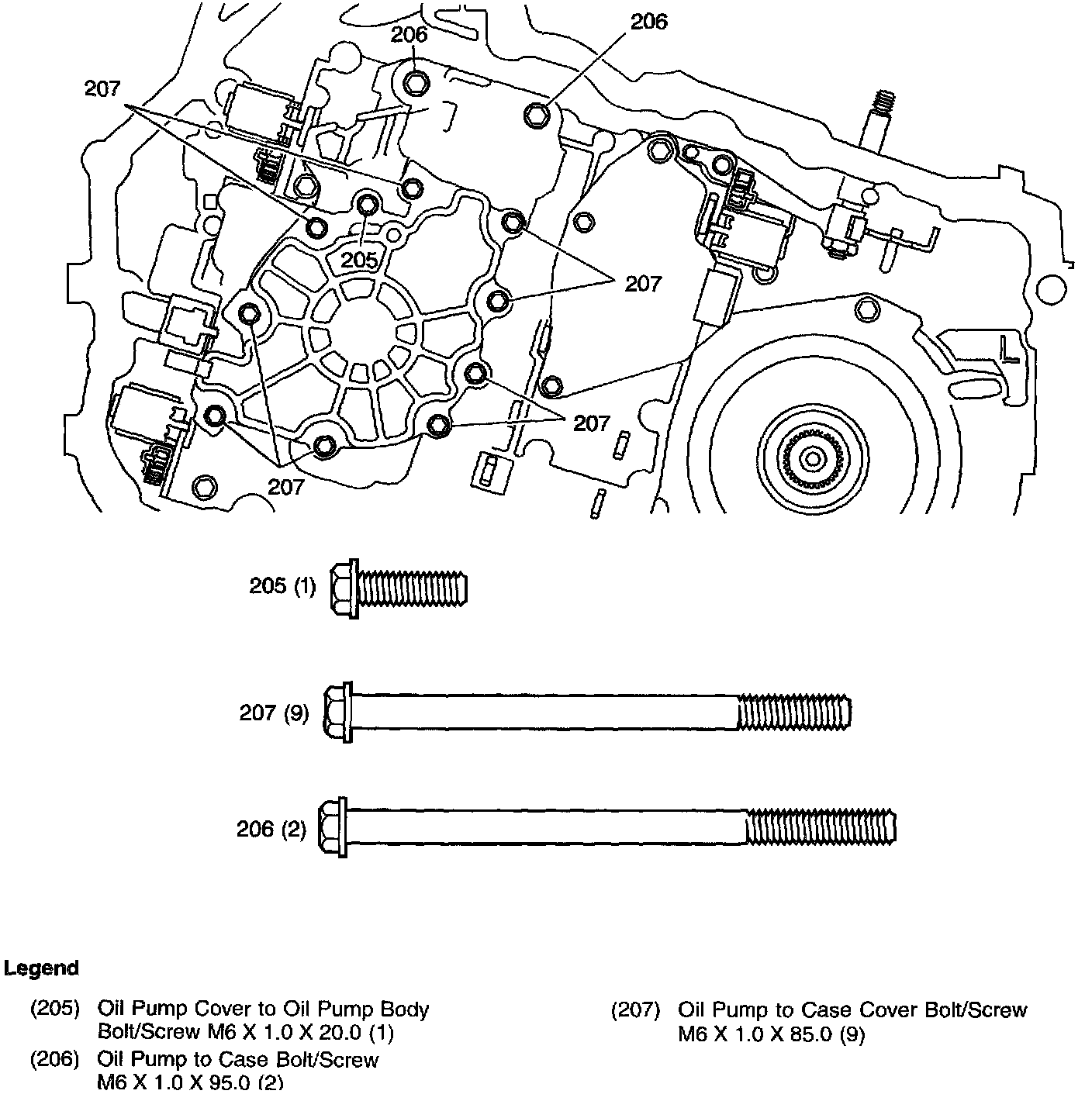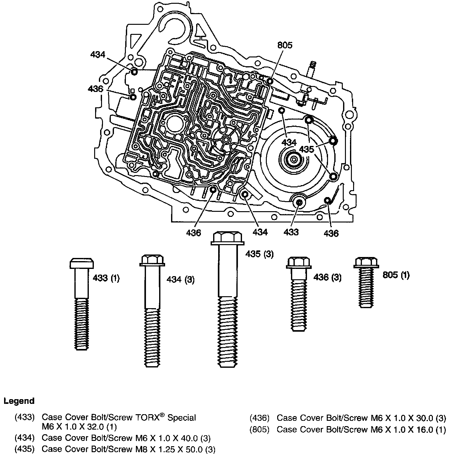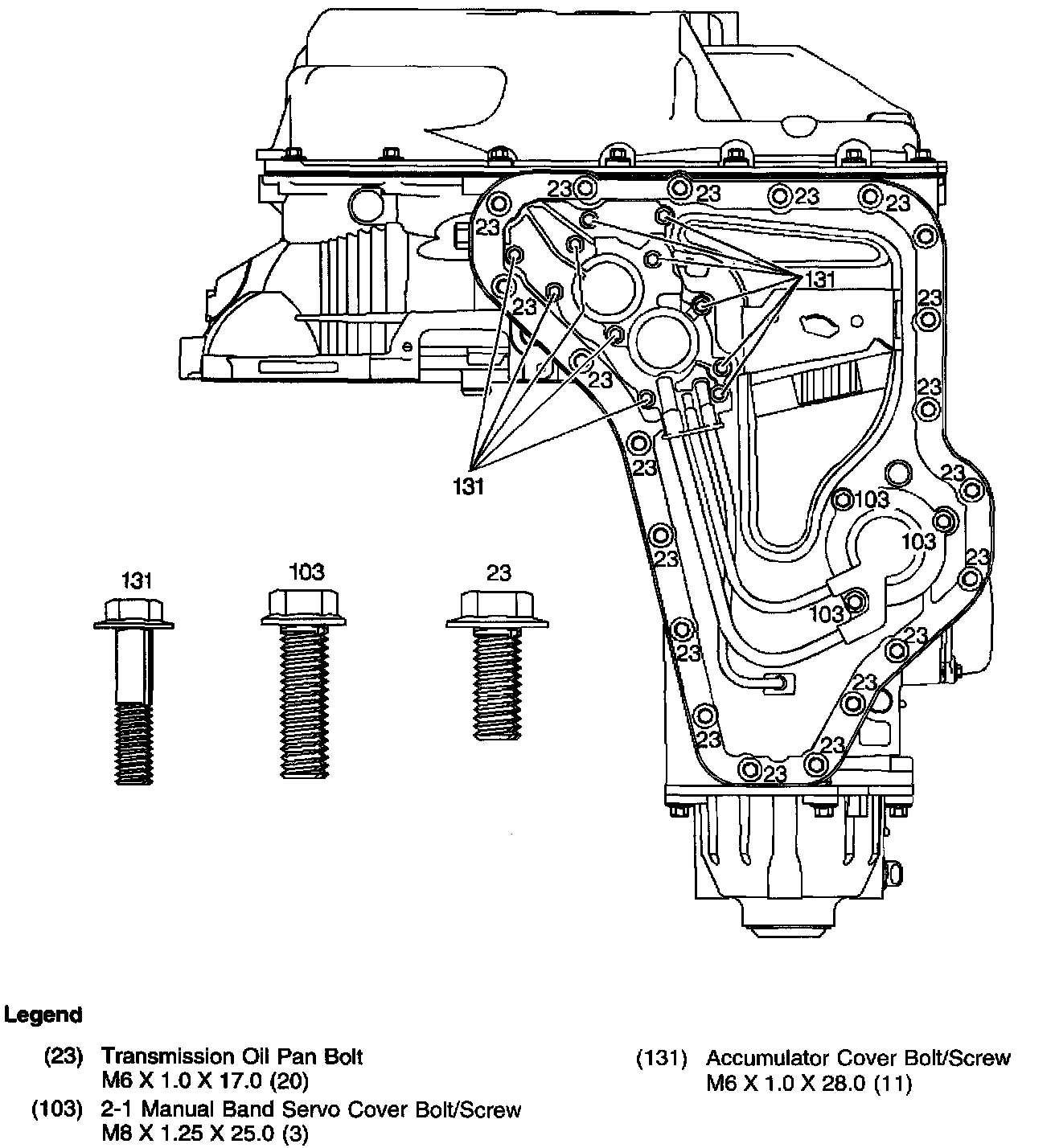 Bottom Pan, Accumulator Cover and Manual 2-1 Band Servo Cover Bolts