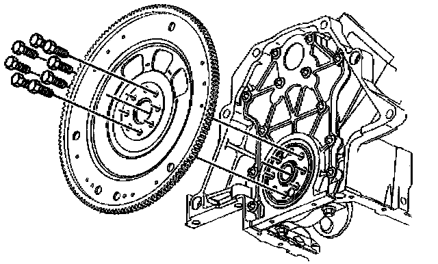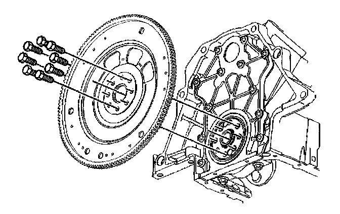 3. Loosen the 8 engine flywheel bolts.