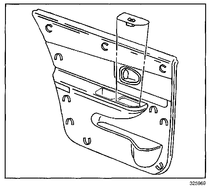 REMOVAL PROCEDUREIMPORTANT: When removing a door trim panel or switch plate, the ignition switch must be in the OFF position. This will eliminate the possibility of shorting out the switch if a flat-bladed tool, awl or metal object is used to remove the switch from the harness.