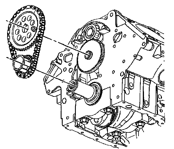 9. Assemble the timing chain on the sprockets with the timing marks as close together as possible.