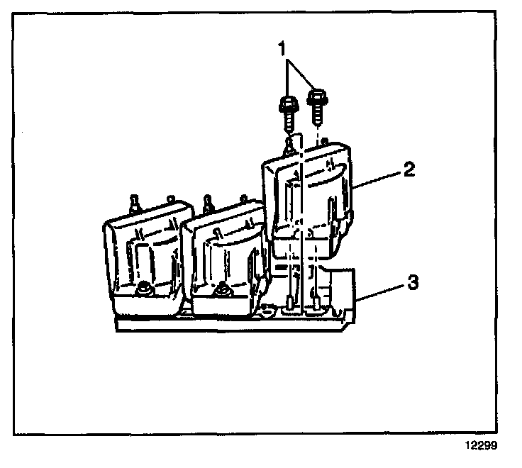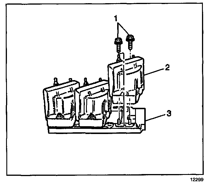 3. Remove the ignition coil screws (1).