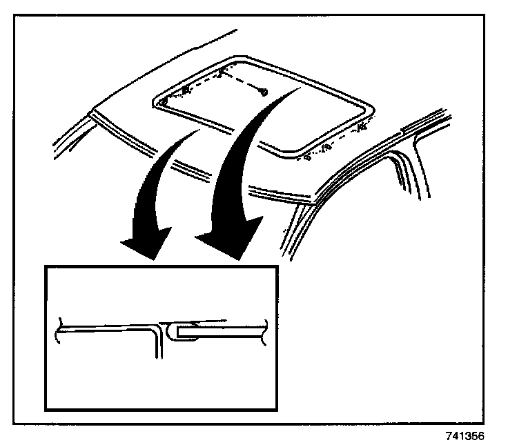 5. Adjust the front of the sunroof glass panel to 2.0 mm (0.079 in) below the top surface of the root panel.