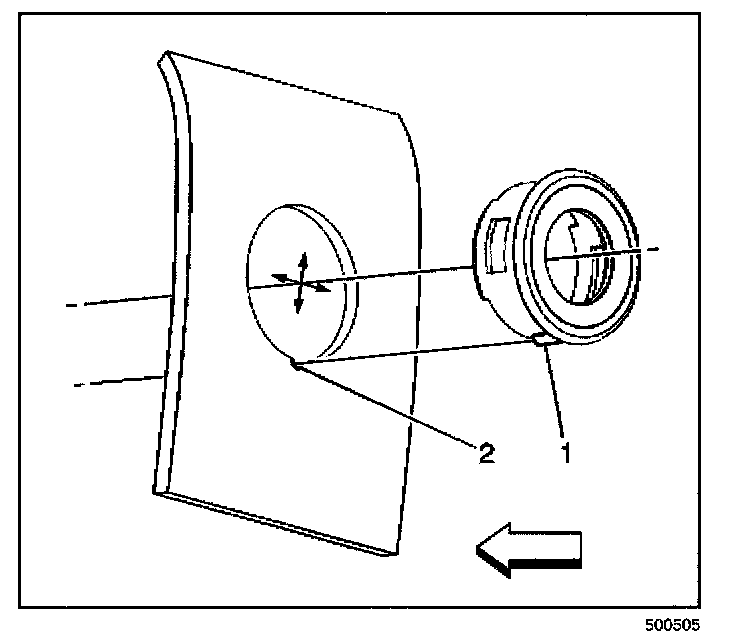 3. Align the keyhole (2) with the key (1) and press the rear object sensor bezel flush to the fascia.