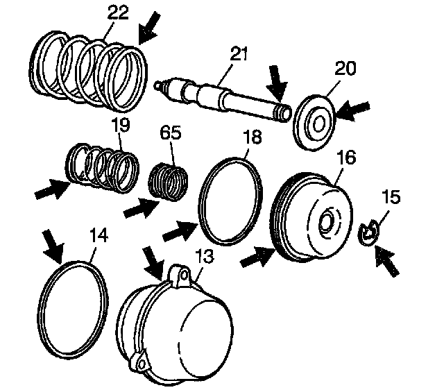 ^ Broken or collapsed servo piston cushion inner spring (65)