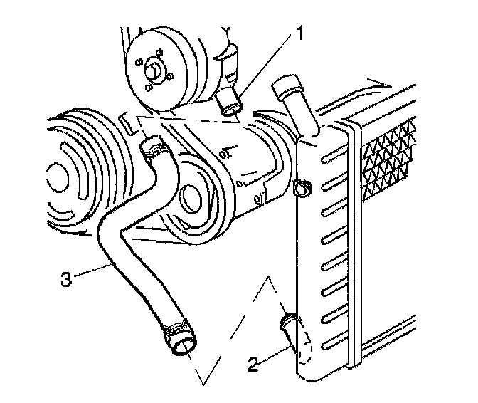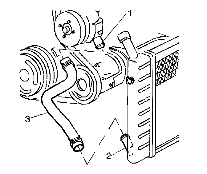6. Disconnect the outlet hose (3) from the radiator (2).