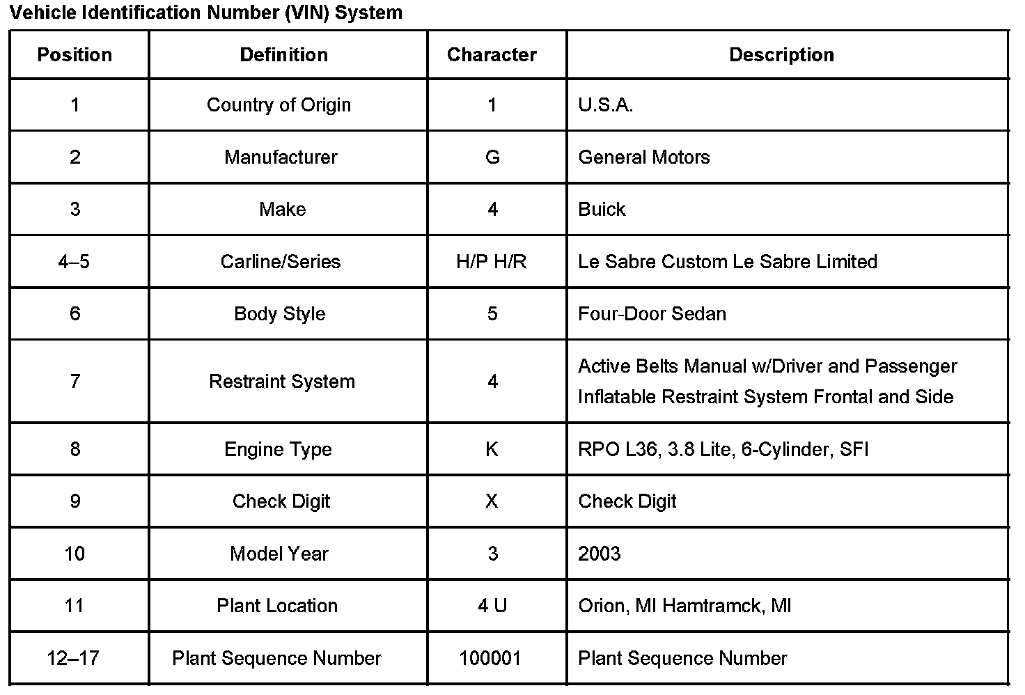 Vehicle Identification Number (VIN) System: