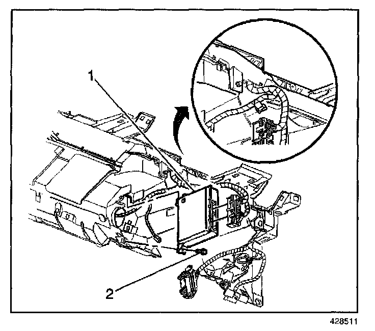 2. Remove the fastener (2) from the instrument panel module (IPM).