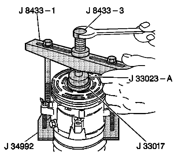7. Turn the J 8433-3 of the J 8433-1 in order to force the clutch coil onto the head.