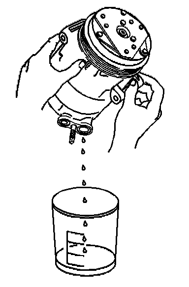 3. Measure and record the amount of oil drained from the removed compressor.