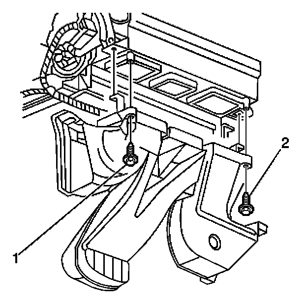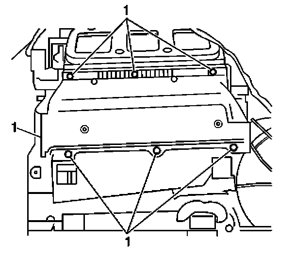 6. Install the heater core heat shield screws (1).