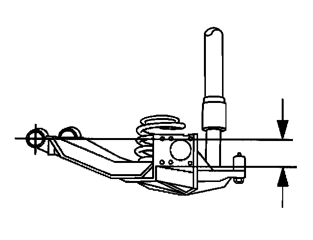 The Z height dimension measurement determines the proper ride height for the front end of the vehicle. There is no adjustment procedure. Repair may require replacement of suspension components.