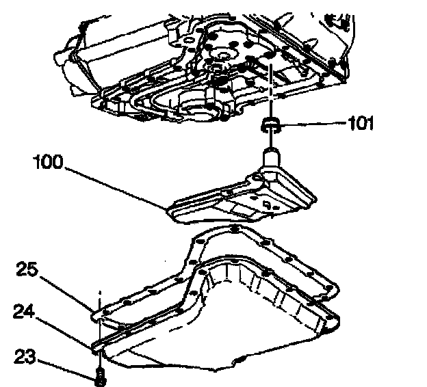 3. Install the oil pan (24) and the gasket (25) at the same time.