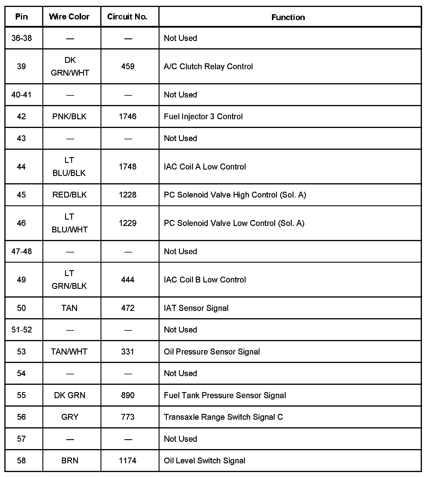 Powertrain Control Module (PCM) 80-Way Clear Connector C2 Details Part 3: