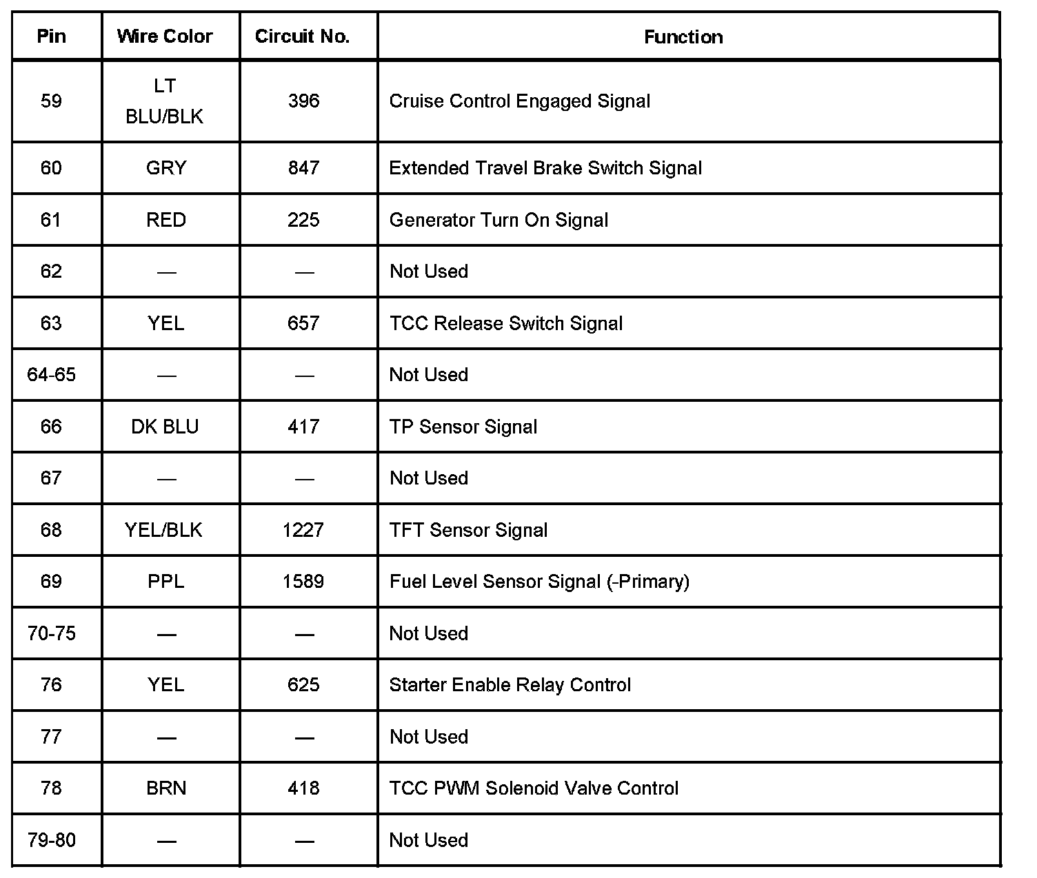 Powertrain Control Module (PCM) 80-Way Clear Connector C2 Details Part 1: