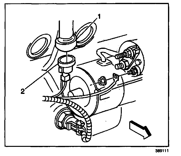 4. Disconnect the electrical connector (2) from the knock sensor (1).