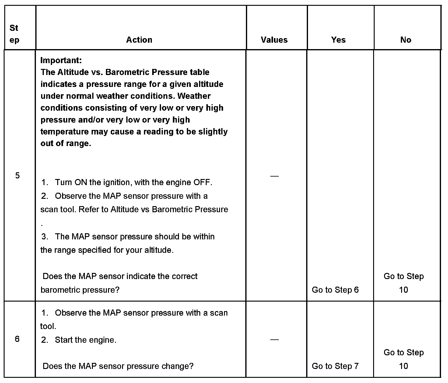 4. This step tests the MAP sensor's ability to correctly indicate BARO.