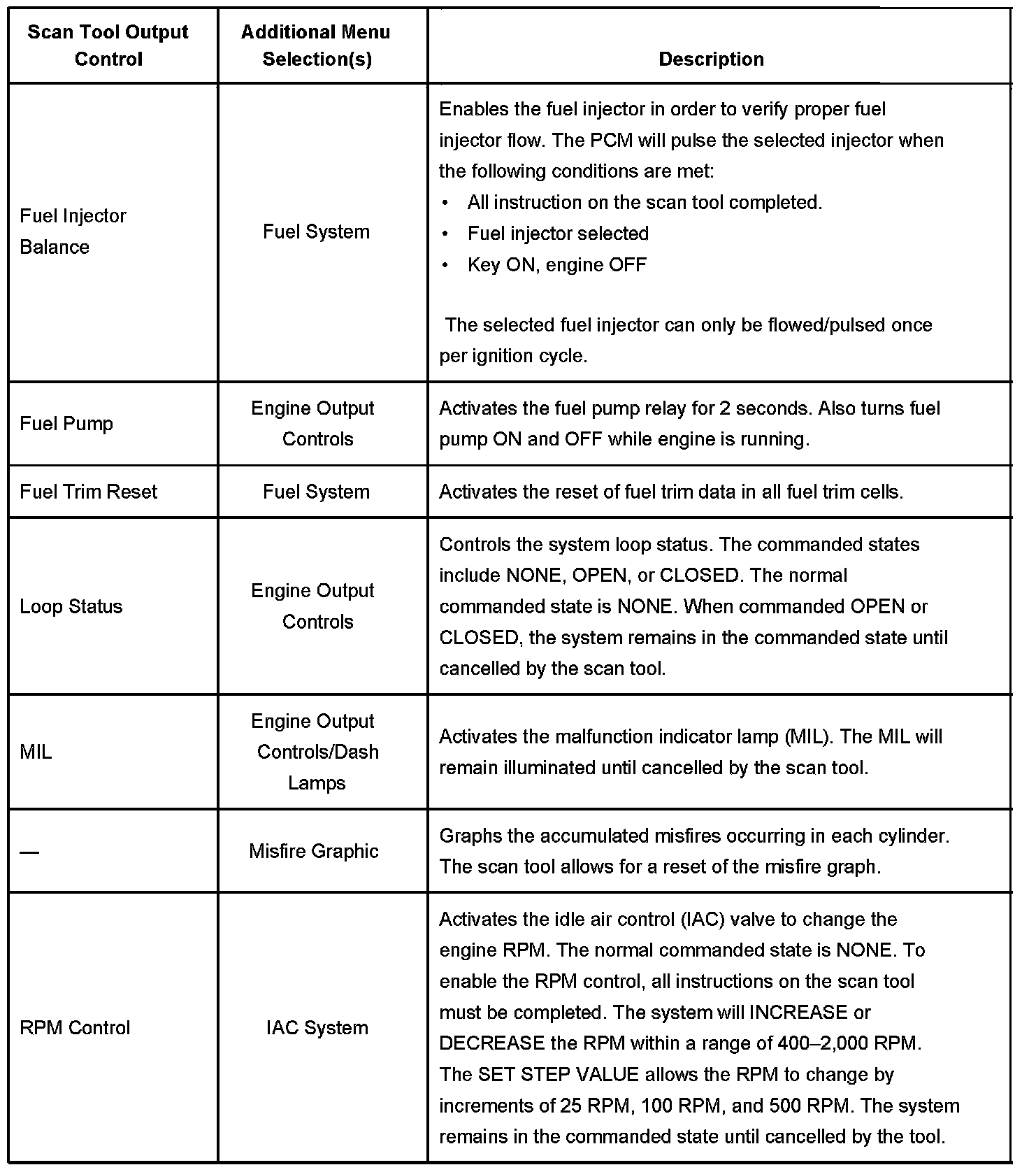 Scan Tool Output Controls