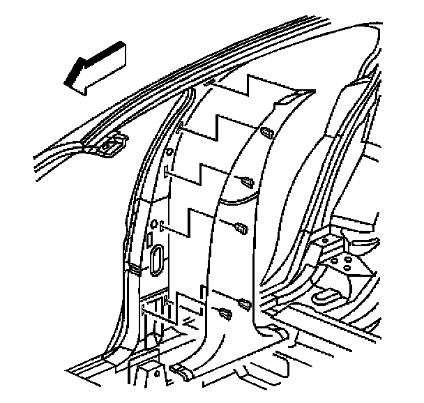 IMPORTANT: Release the passenger side center pillar trim garnish molding upper retainer.