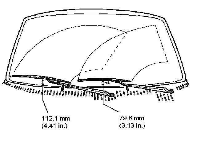 3. Install the wiper arm onto the pivot shaft while aligning the wiper blade with the locating marks on the windshield. If the windshield does not have locating marks, locate the center of the blades to the distance shown up from the base of the windshield.