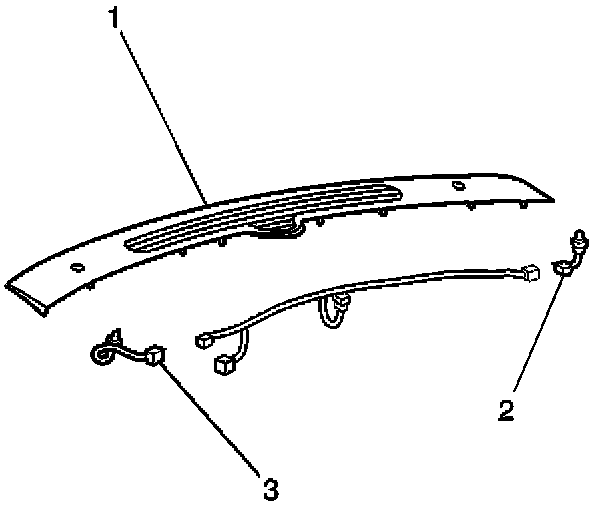 2. Install the left sun load sensor (3) to the defroster grille (1) by turning the sensor clockwise 1/4 turn.