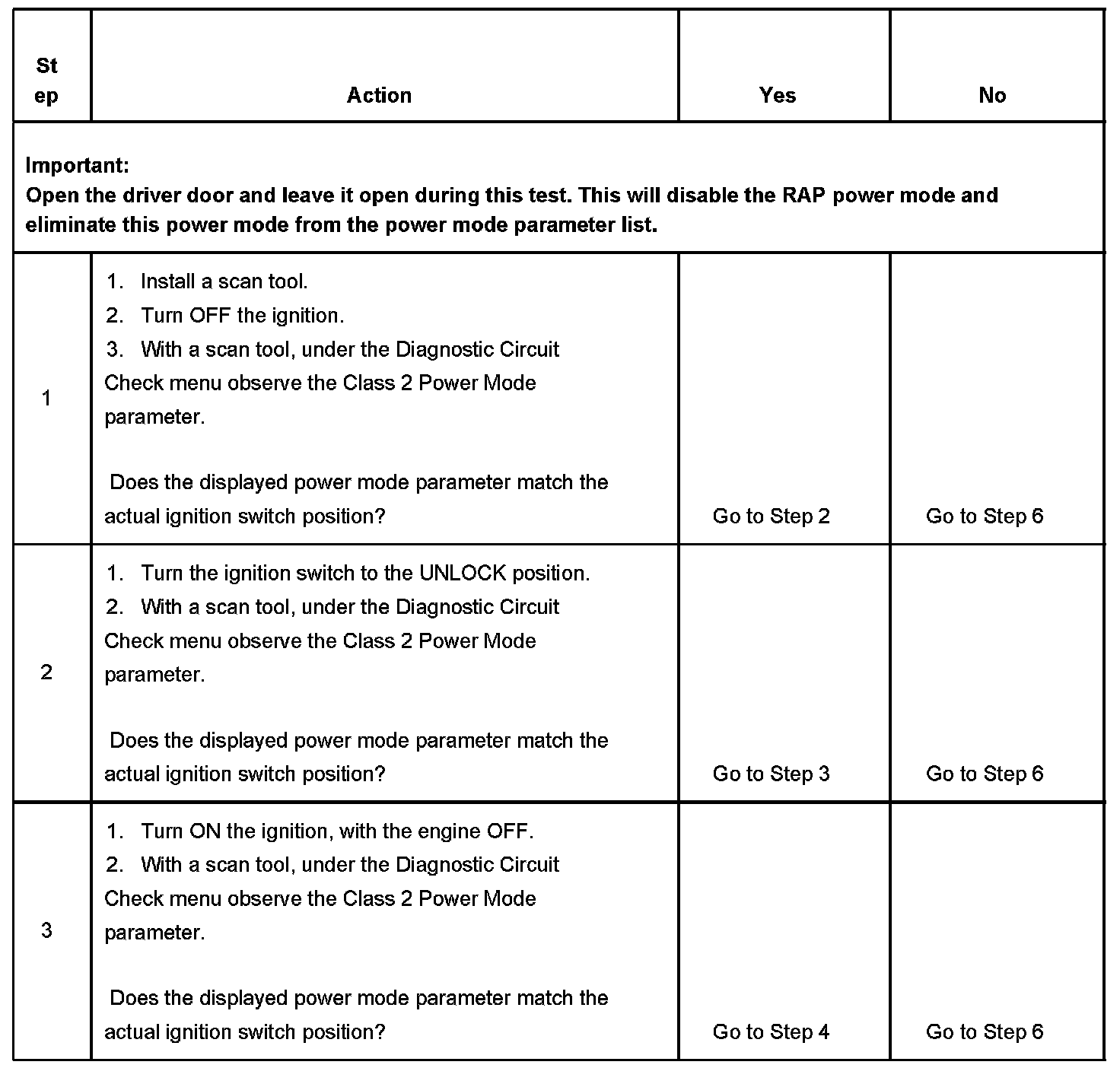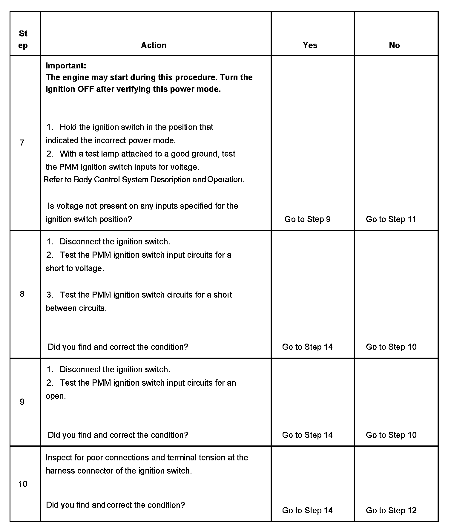 6. This step tests for battery voltage on the signal circuits that are not required.
