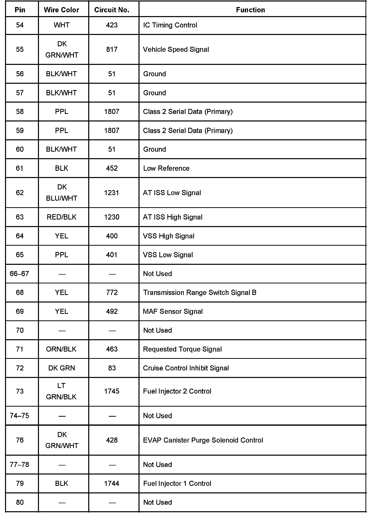 PCM 80-Way Blue Connector C1 Details Part 2: