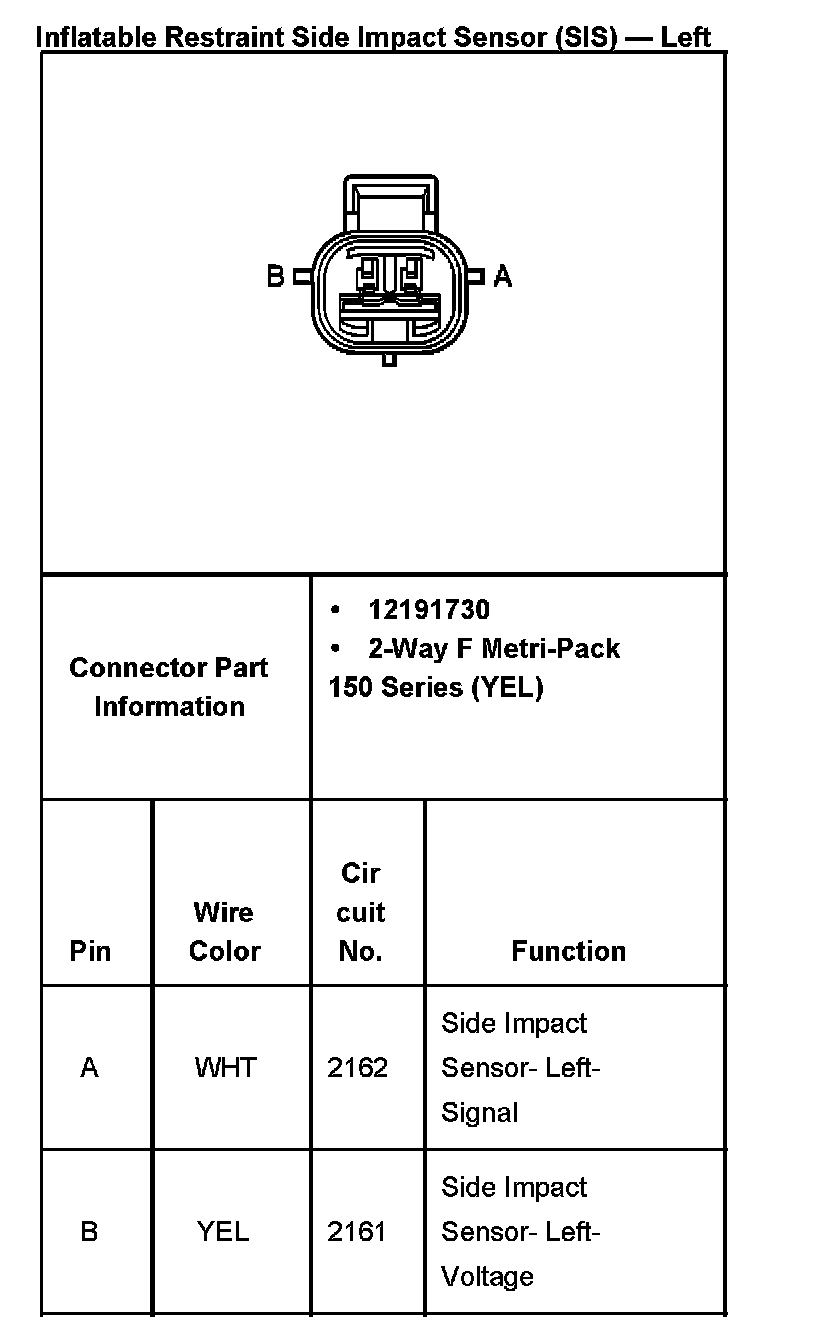 Inflatable Restraint Side Impact Sensor (SIS) - Left: