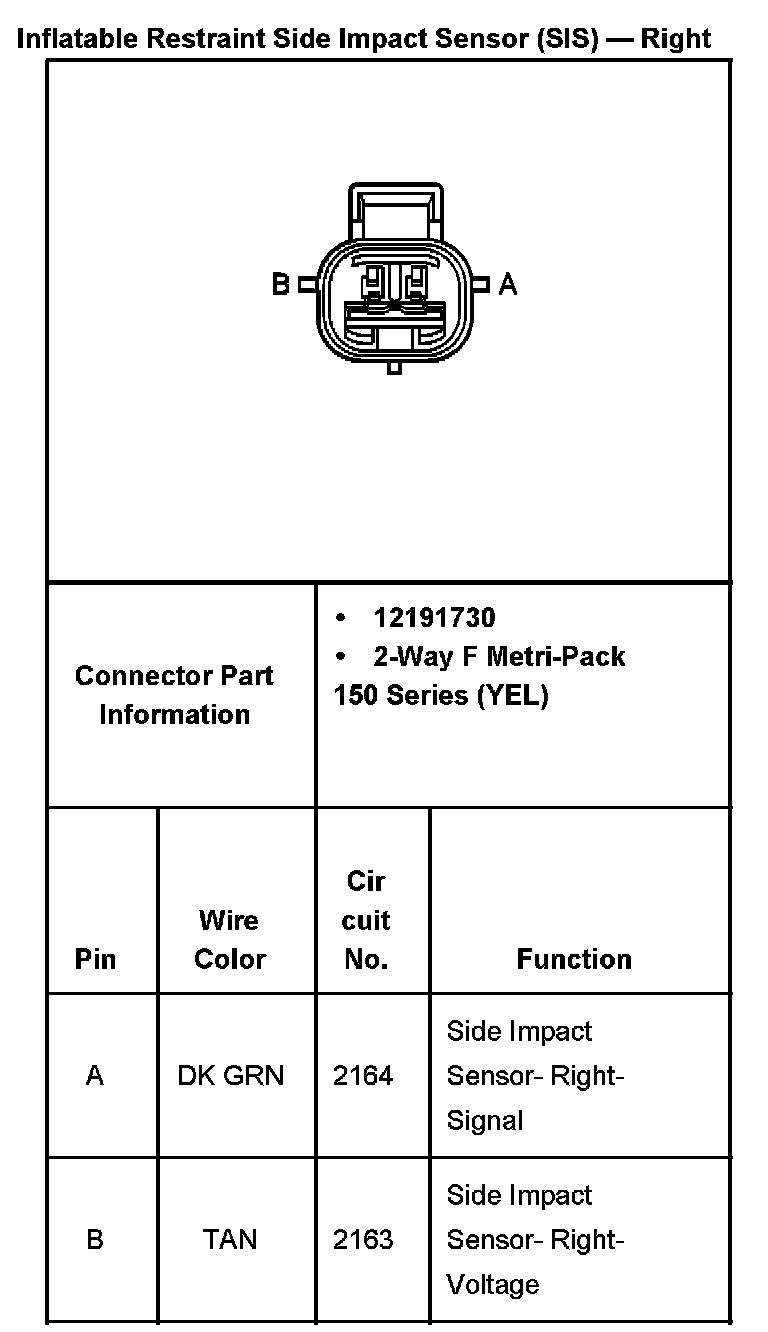 Inflatable Restraint Side Impact Sensor (SIS) - Right: