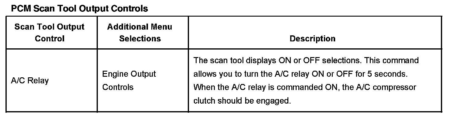 Scan Tool Output Controls - Powertrain Control Module (PCM)