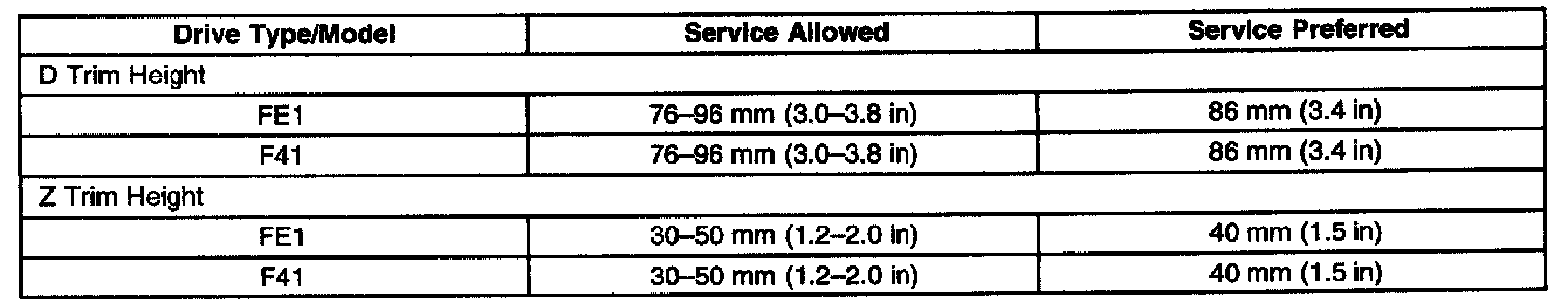 Ride/Trim Height Specifications