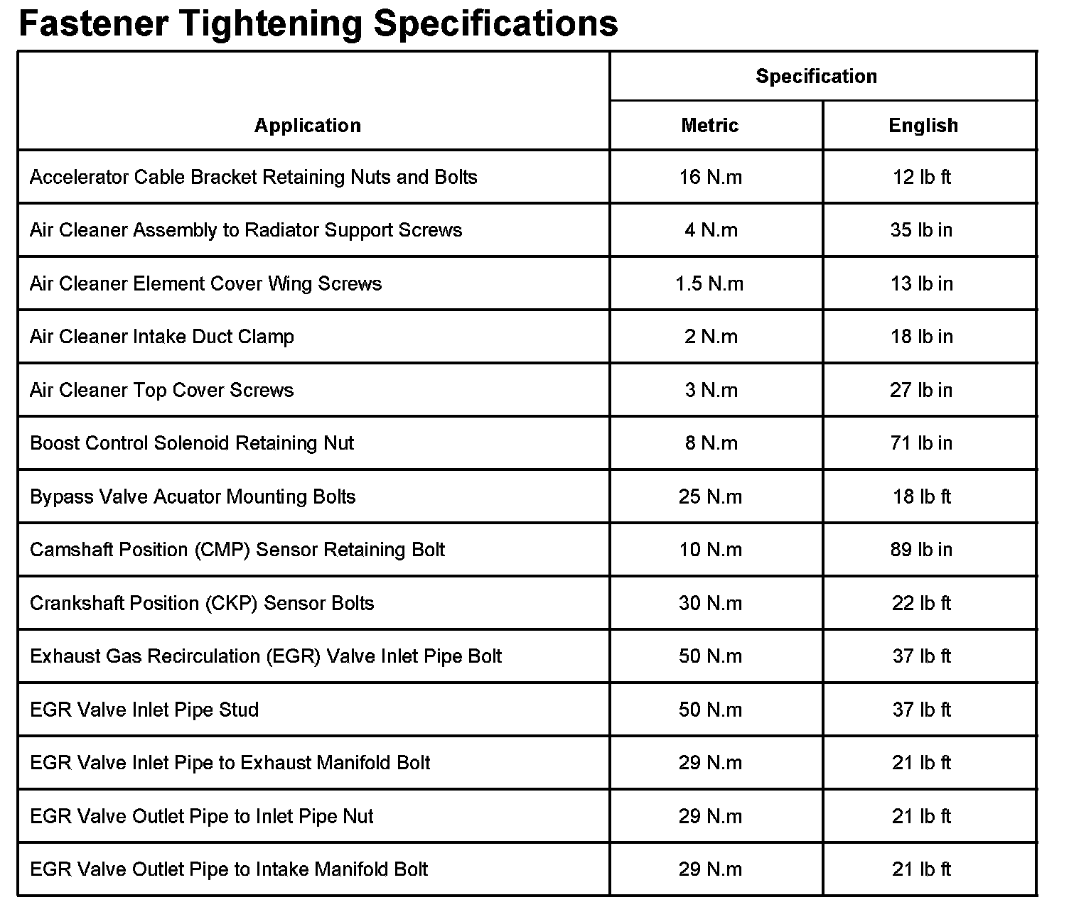 Fastener Tightening Specifications Part 1: