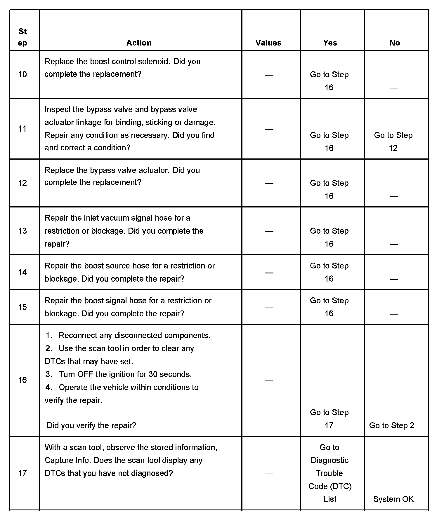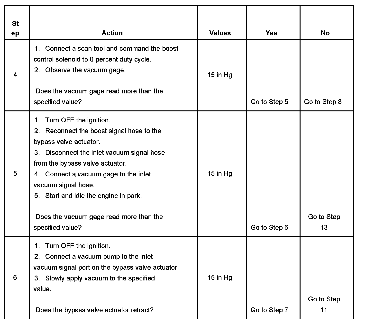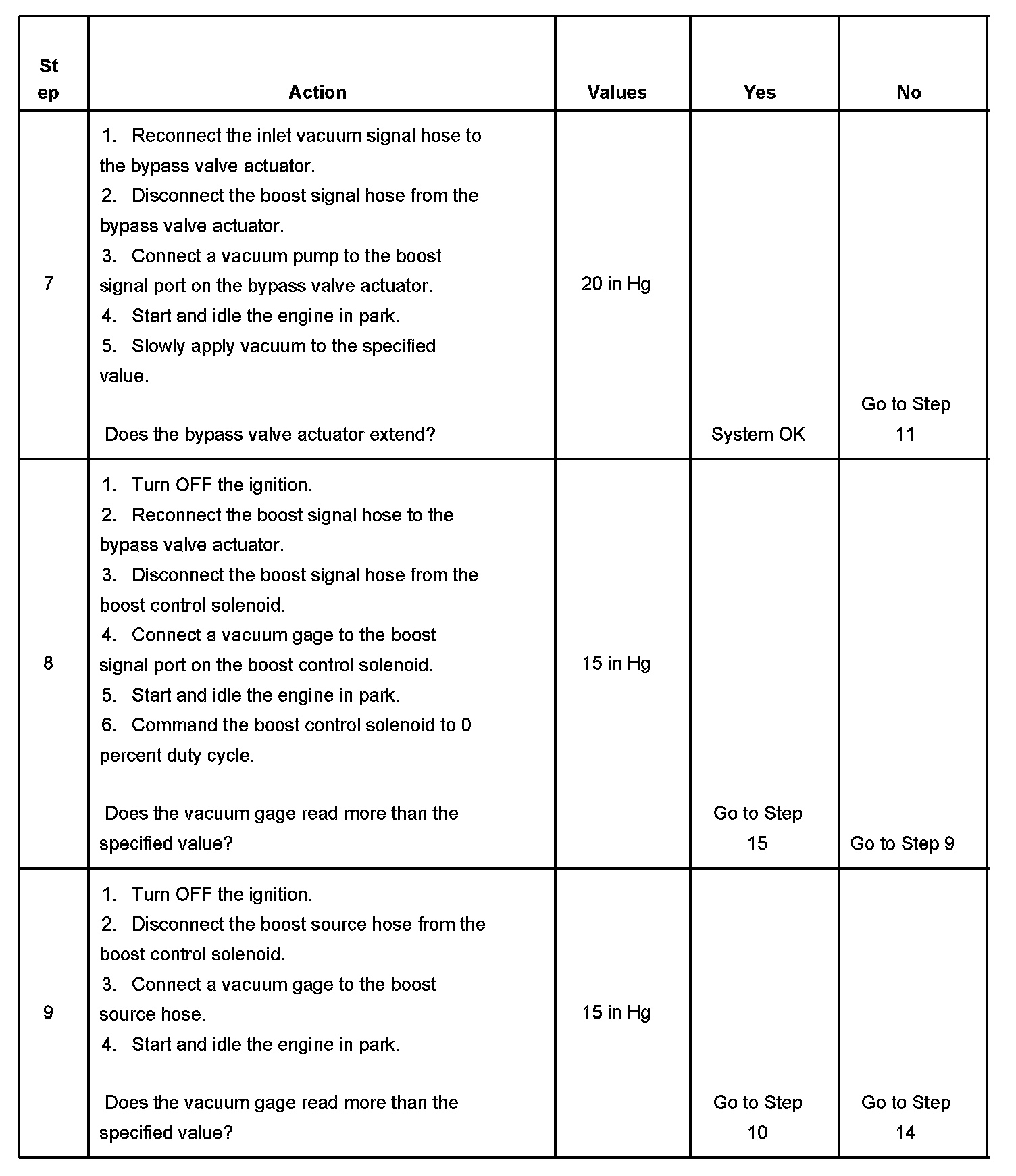 The PCM controls boost pressure by using the boost control solenoid. The boost control solenoid is a normally open valve. Under most conditions, the PCM commands the boost control solenoid to operate at a 100% duty cycle. This keeps the solenoid valve closed and allows only inlet vacuum to control the position of the bypass valve. At idle, engine vacuum is applied to the upper side of the bypass valve actuator, counteracting spring tension to hold the bypass open. As engine load is increased, engine vacuum is decreased, causing the spring in the bypass valve actuator to overcome the applied vacuum, closing the bypass valve and allowing the boost pressure to increase. When reduced boost pressure is desired, the PCM commands the boost control solenoid to operate at a 0 percent duty cycle. This opens the solenoid valve and allows boost pressure to enter the bypass valve actuator at the lower side to counteract the spring tension, opening the bypass valve and recirculating excess boost pressure back into the supercharger inlet.