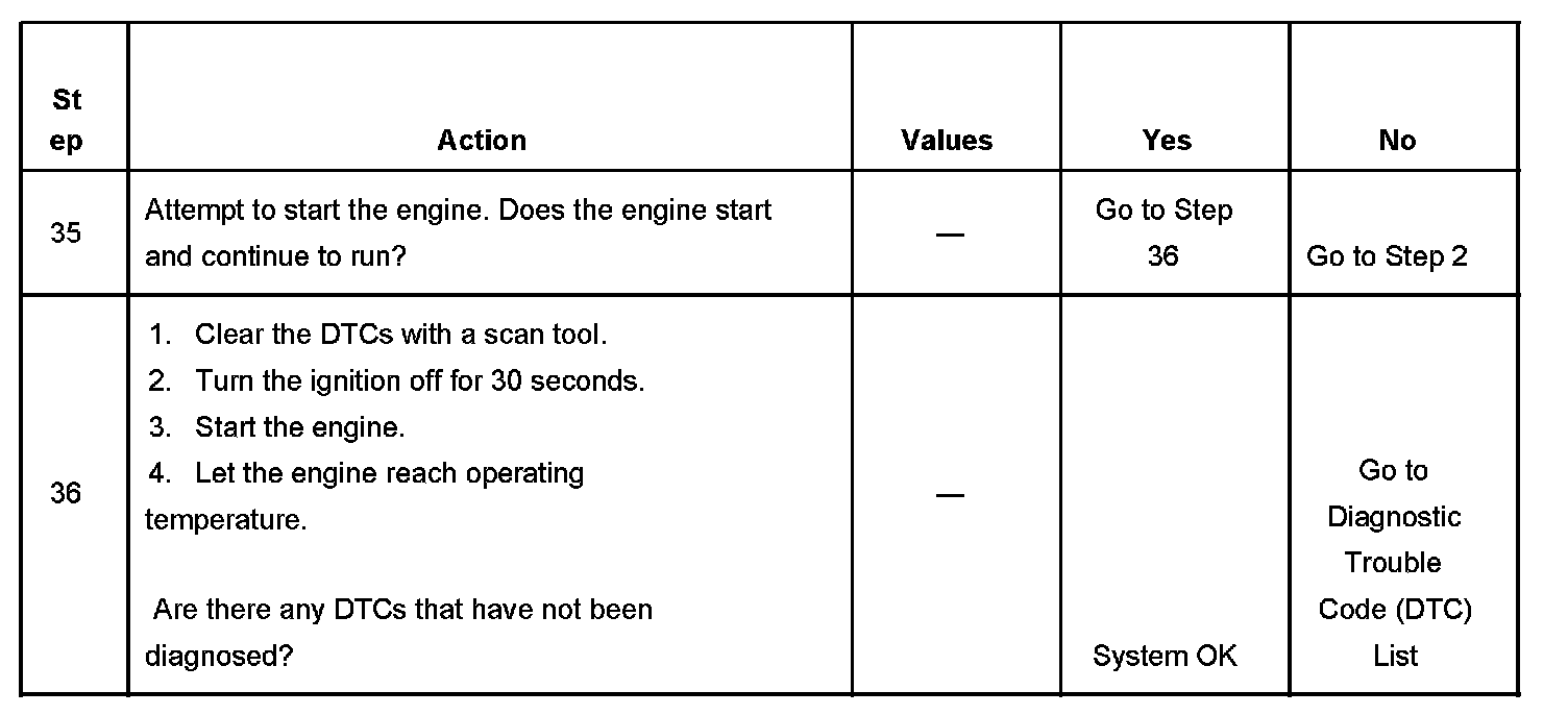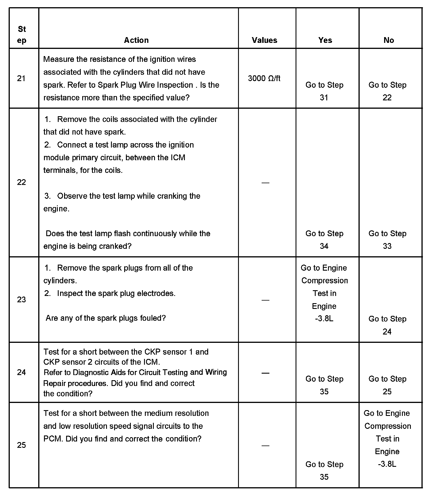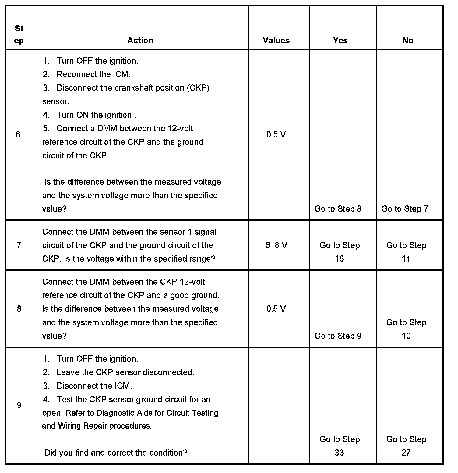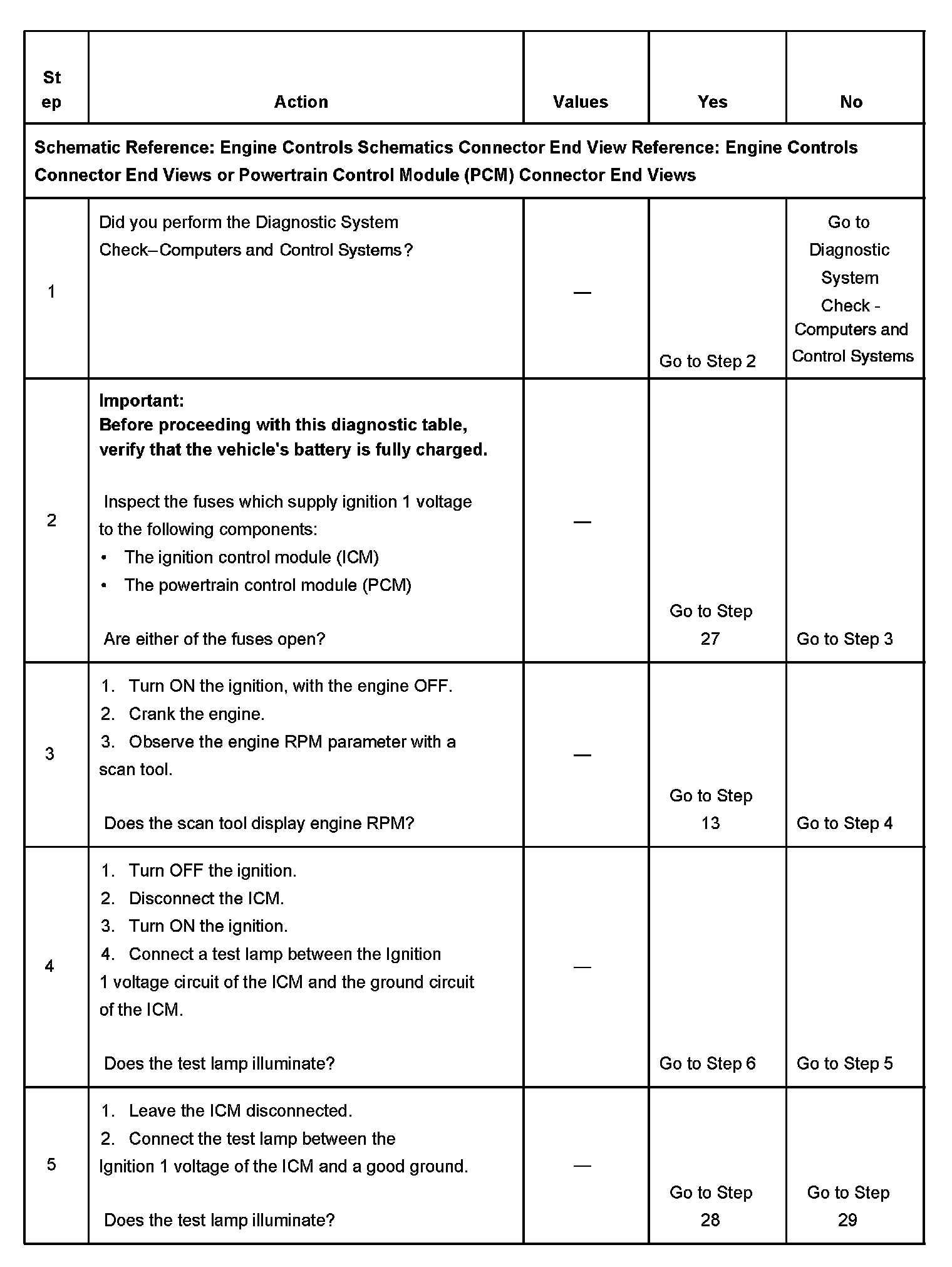 The numbers below refer to the step numbers on the diagnostic table.