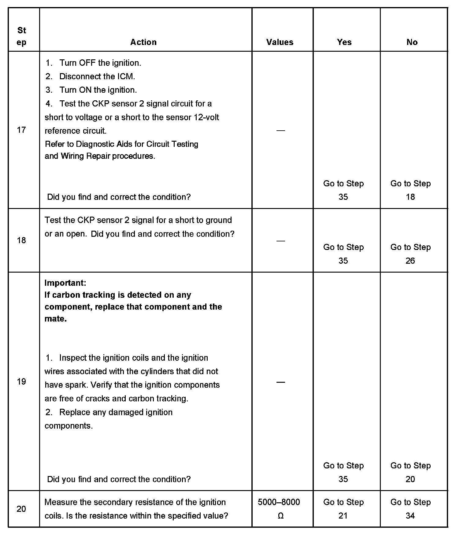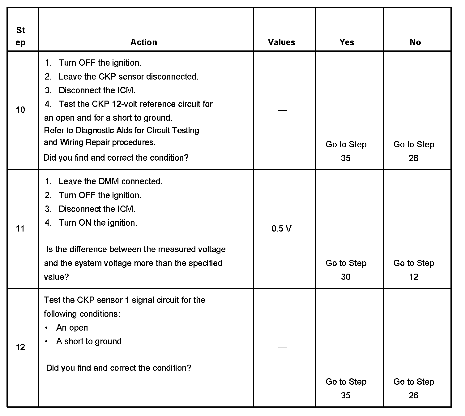 3. Determines if the ignition control (IC) module is receiving the CKP sensor 1 signal. If the CKP sensor 1 signal to the ICM is not present, there will be no RPM, spark, or fuel injector pulses.