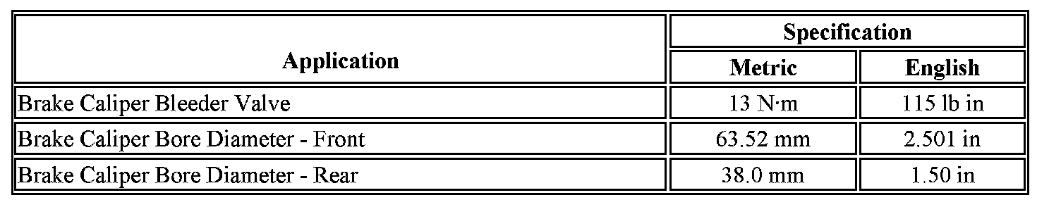 Brake Component Specifications