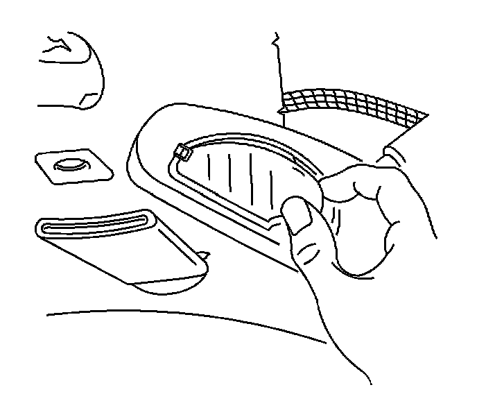 1. Use a small flat-bladed tool to disengage the edge of the lamp lens. Remove the lens from the rearview mirror.
