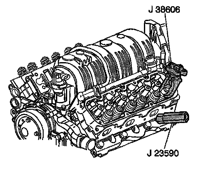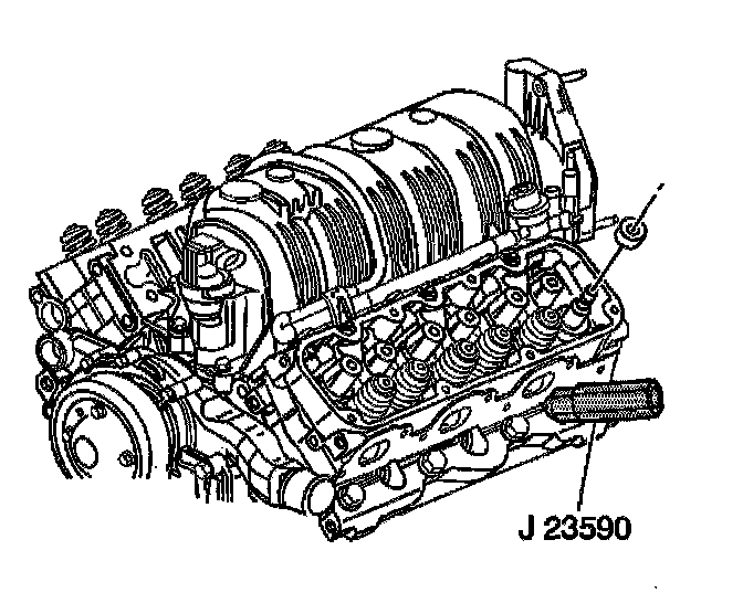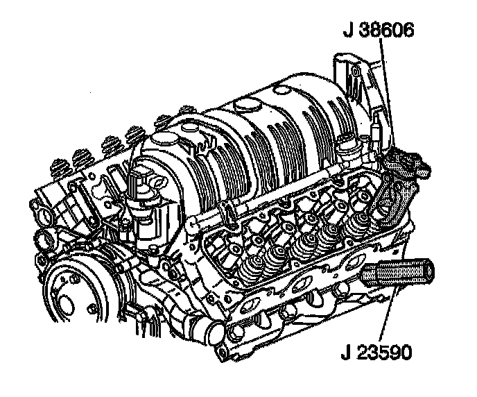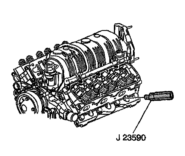 4. Install the J 23590 to the spark plug port and apply compressed air in order to hold the valves closed.