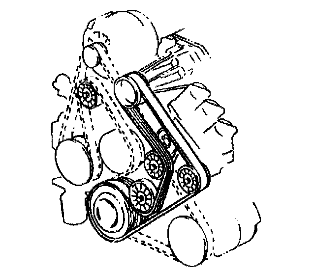 All driven accessories rigidly mount to the engine. Spring-loaded belt tensioners maintain the drive belt tension. Each drive belt has its own tensioner. A drive belt squeak, occurring when the engine starts or stops, is normal and has no effect on the durability of the drive belt. The drive belt tensioner can control the drive belt tension over a broad range of drive belt lengths, due to stretching. However, there are limits to the tensioner's compensation ability. Poor tension control and/or damage to the tensioner may occur after using the tensioner outside of its operating range. Replace the drive belt when this occurs.