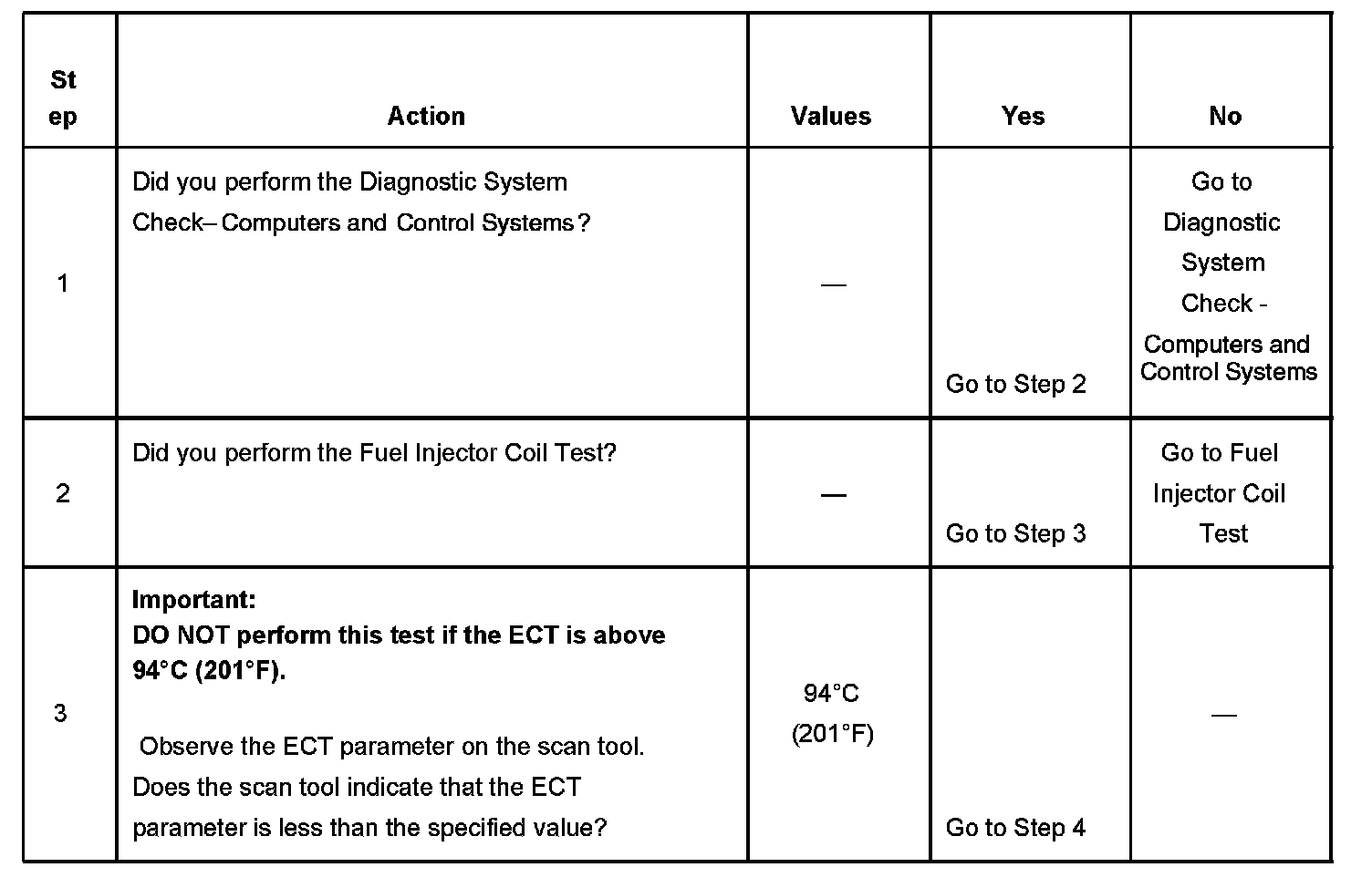 3. The engine coolant temperature (ECT) must be below the operating temperature in order to avoid irregular fuel pressure readings due to hot soak fuel boiling.